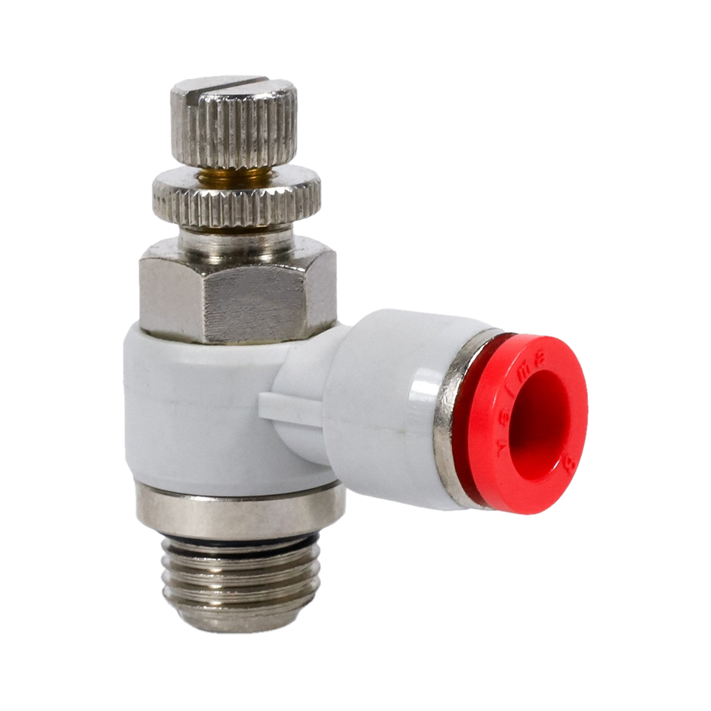 SC-BL-04-G14-EC Фитинг угловой с регулировкой расхода (пневмодроссель), 4мм x G 1/4